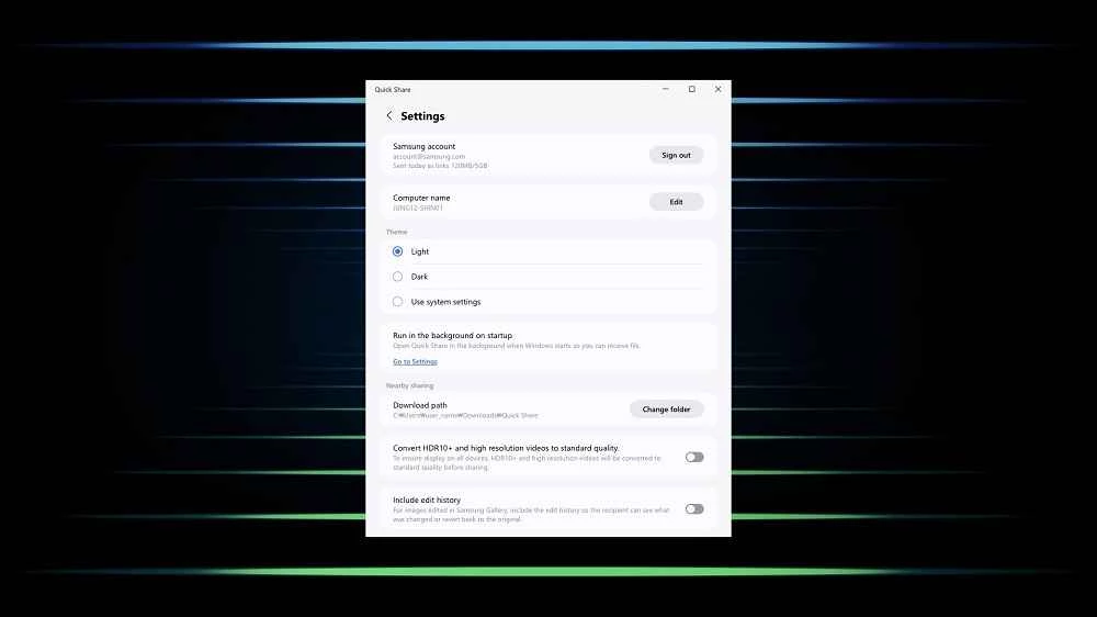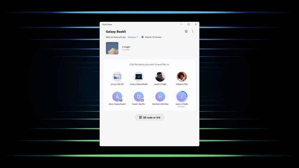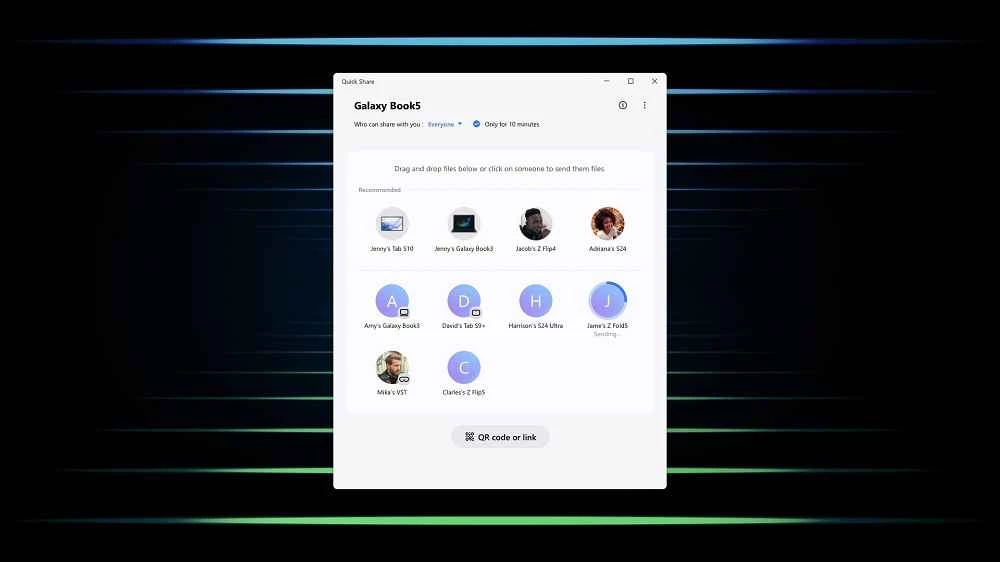 تطبيق Quick Share، من تطوير سامسونج، يُقدم ميزة المشاركة بنقرة واحدة، وهو مصمم خصيصًا لأجهزة سامسونج جالاكسي، ويدعم أيضًا أجهزة الكمبيوتر التي تعمل بنظام ويندوز والتي تتطلب نظام تشغيل مناسب. إنه أداة بسيطة ومجانية وخفيفة الوزن تُسهّل عملية مشاركة الملفات، سواءً للاستخدام الشخصي أو المهني.